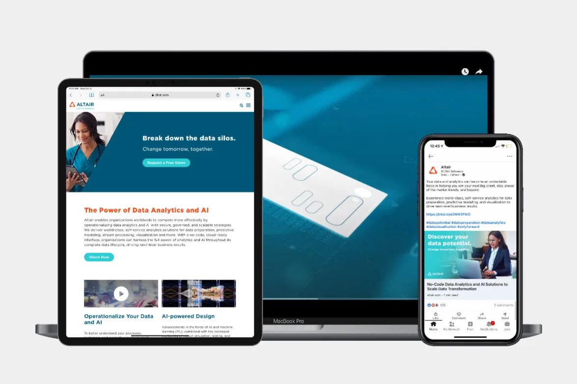 Developed a high-level brand campaign that would grow awareness and affinity of Altair as the leader in data analytics and AI. MarCom Awards Gold Winner.